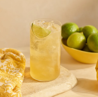 - Fill the glass with ice, then garnish with a fresh wedge of lime